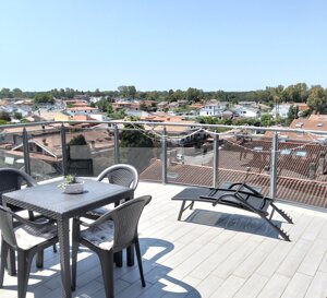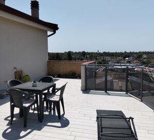Madonnetta, Residenze Carla, in Via Padre Massaruti, proponiamo un appartamento posto al piano 4° e 5° ed ultimo piano di 85 mq c.a. con due terrazze e balcone con box auto petinenziale. L'immobile al suo interno si articola come segue: al 4° piano con un Salone, cucina, bagno con doccia e accesso diretto sul balcone, terrazza di 40 mq. al 5° piano (mansardata), si accede con una scala interna posizionata all'interno dell'unità abitativa posta al quarto piano e ci troviamo una ampia zona attrezzata con camera da letto e una seconda terrazza di 20 mq. Il Riscaldamento a pavimento, pavimentazione gres porcellanato, climatizzata, luci led, zanzariere, persiane blindate. Panoramico e luminoso. Box auto comodo e spazioso.